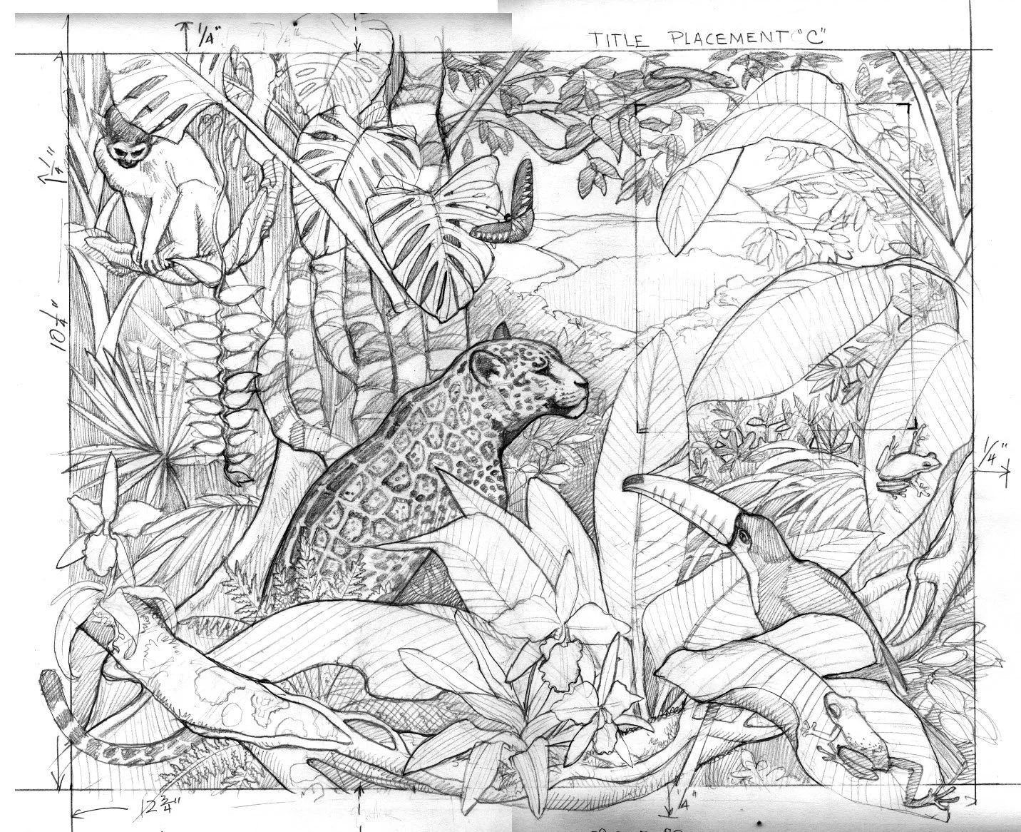 The sketch for this cover, showing the layout for the title placement is over the vista.