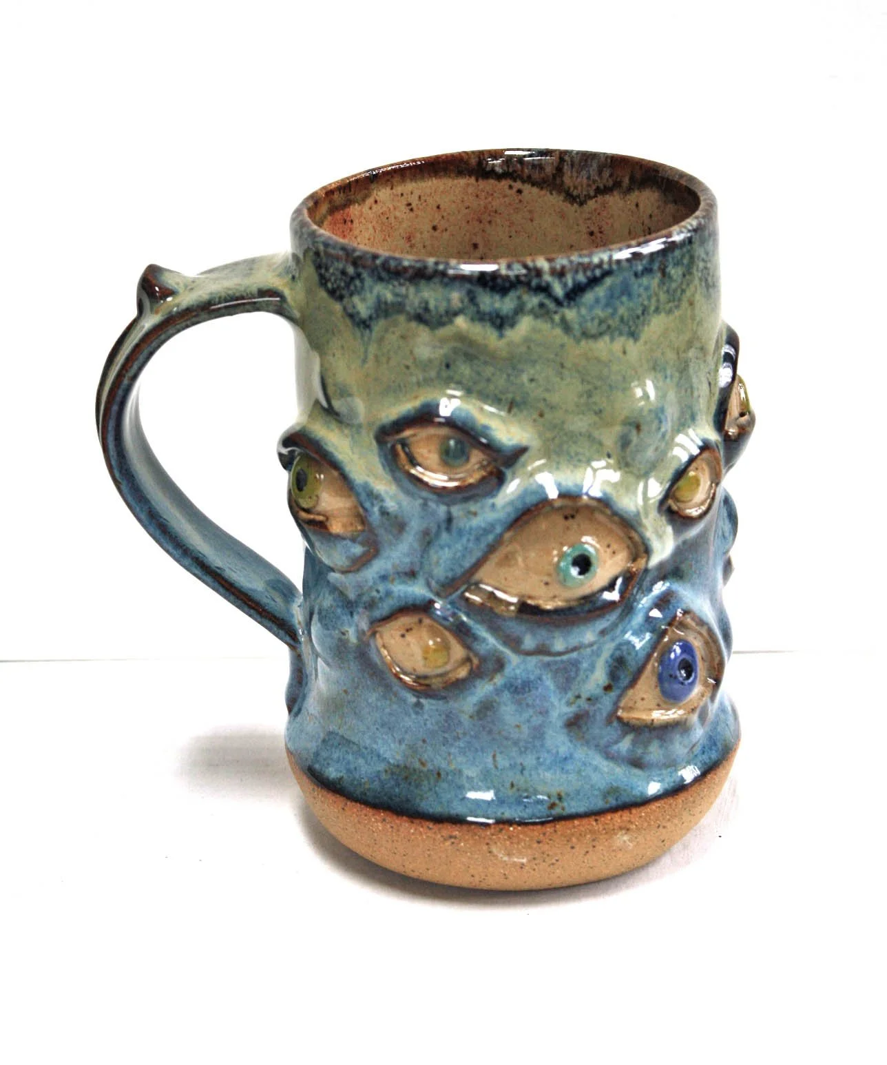 2022. 8” h, brown stoneware. Mike, an art colleague of mine who teaches high school, likes to have a ginormous mug with eyes on his desk to “scare” his students. It doesn’t work and he often gives the mug away…