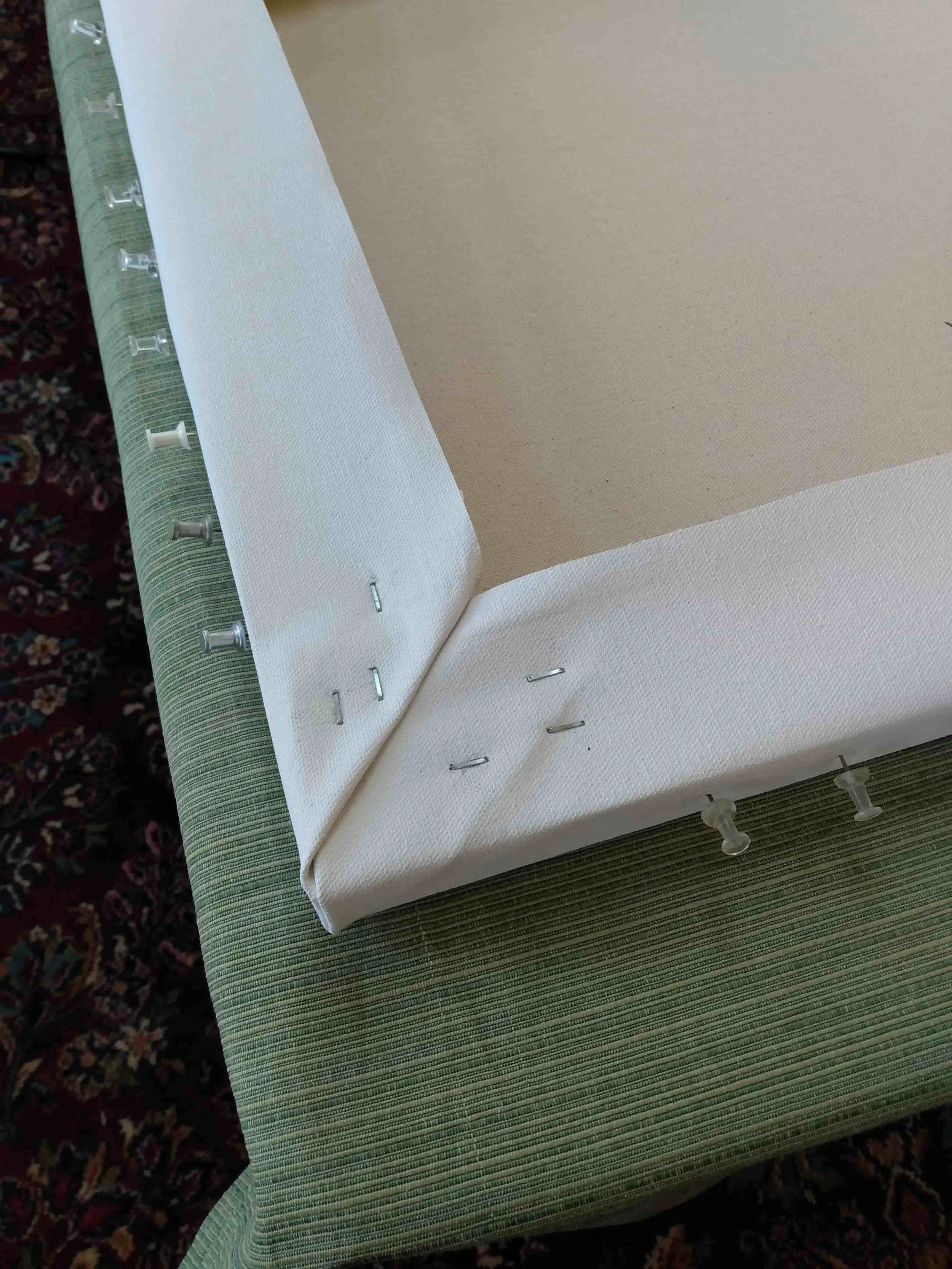 Instead, the article lays out a much better way to stretch canvases starting at the corners. And so, I set out to use this method to see how it worked.