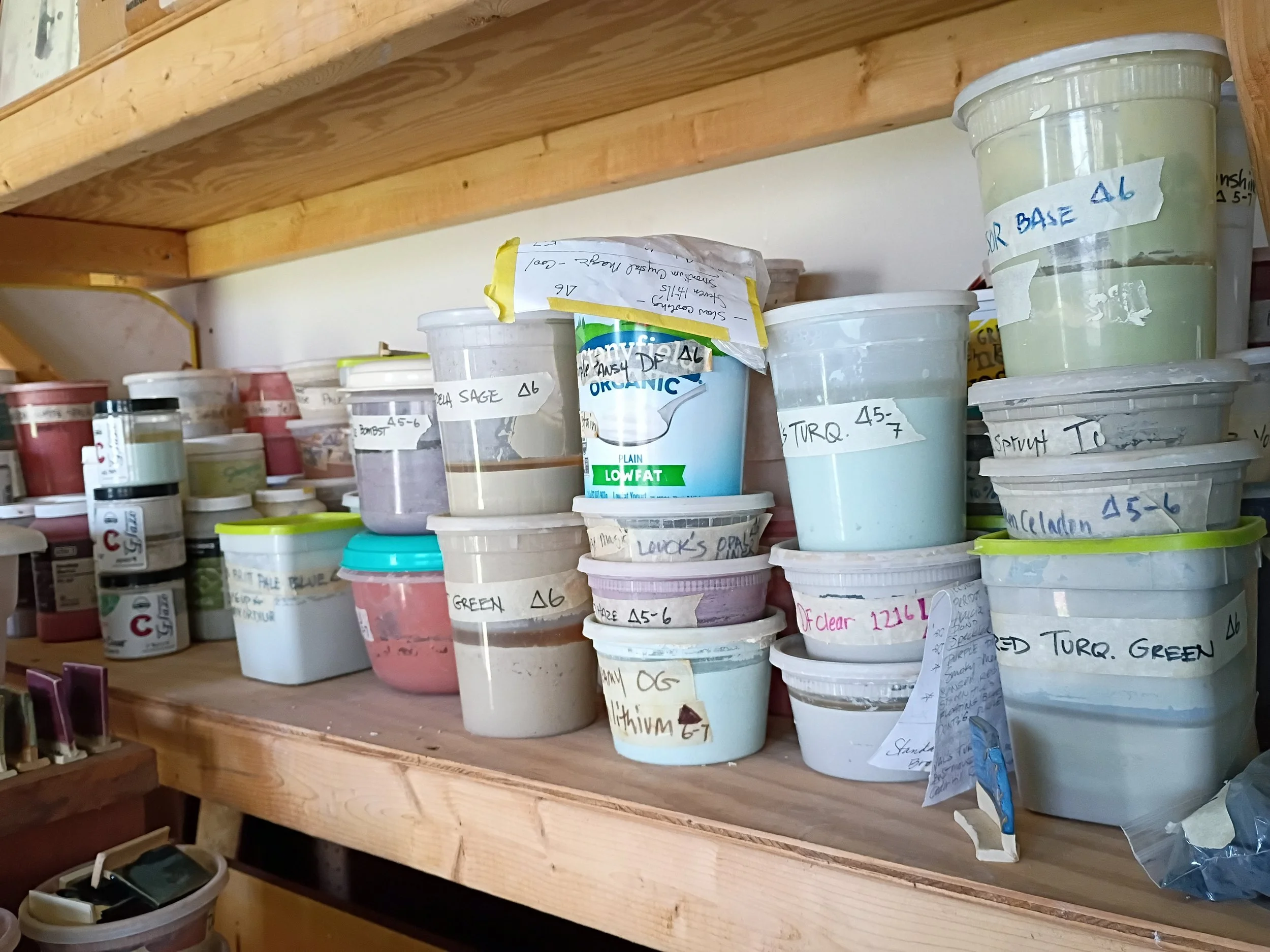 At the same time, I’m shifting toward using stains and manufactured pigments, moving away from many of the heavy metals and metallic oxides that traditionally produce glaze color. Maybe this change was sparked, in part, by my recent surgery—a heightened awareness of my body and a desire to protect it, paired with a need to simplify my workflow and conserve energy. Recipes with more than five ingredients are out. (Though I’ll admit, I’m still holding onto copper oxide—for now.)